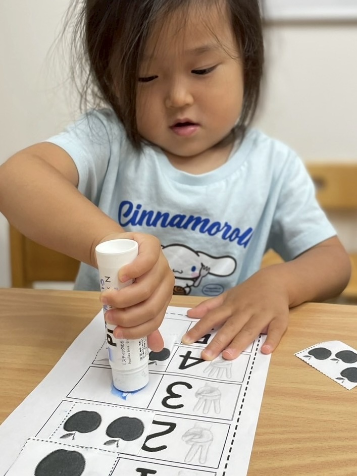 P2 students worked on a hands-on counting activity with apples. Each child received paper apples to count, match, and glue onto the correct number. With lots of excitement, little fingers carefully placed the apples in the right spot.